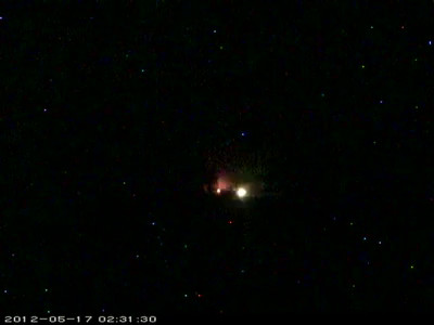 À gauche, sur cette image, vous voyez l’étoile au milieu d’un nuage d’oxide de fer rouge, à droite, la sphère blanche, c’est notre lune, cette image a été prise d’Hawaï.