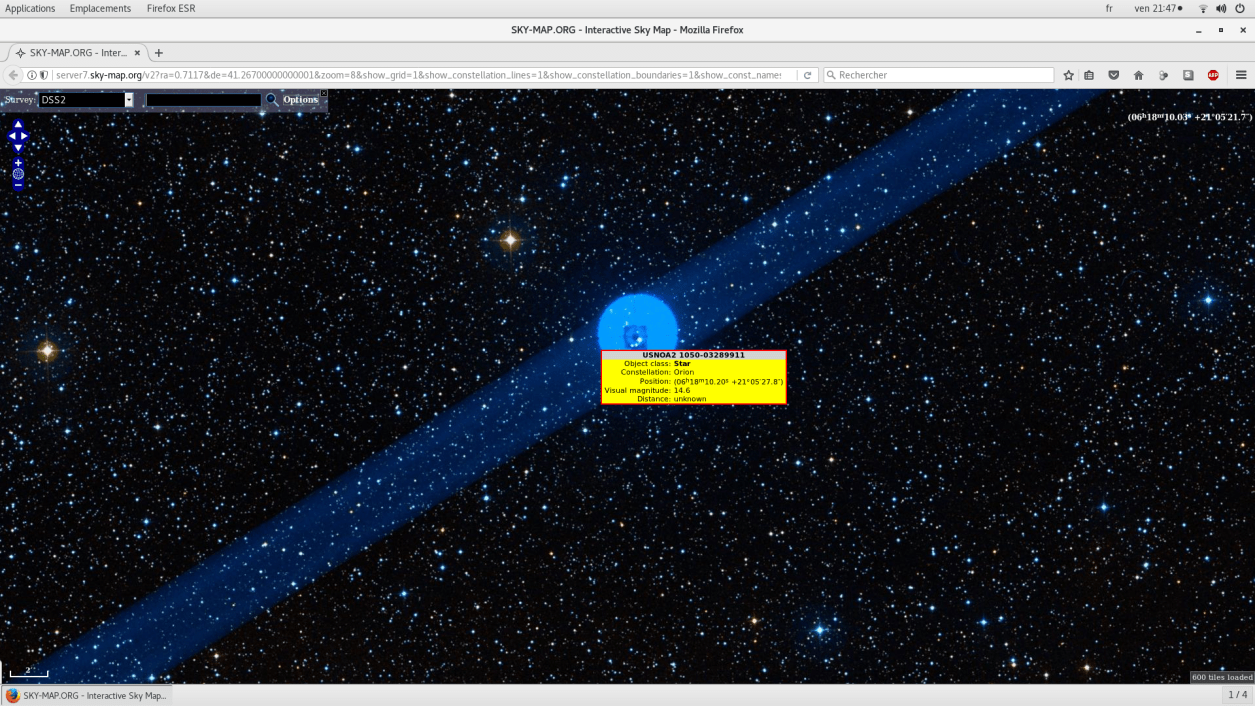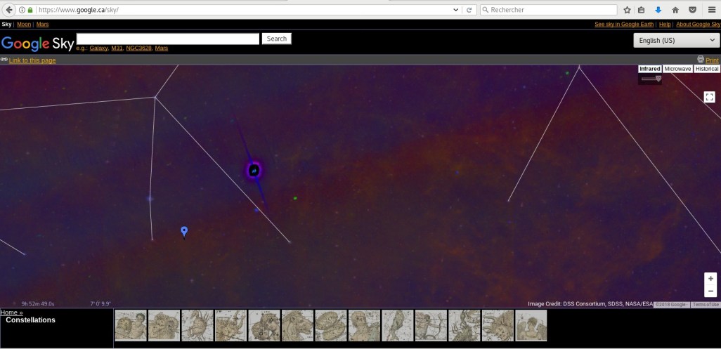 Ce que nous voyons ici, est l’étoile dans Google Sky en infrarouge, chose intéressante ici, l’option infrarouge est absente avec Internet Explorer, mais présente avec Google Chrome et Firefox.